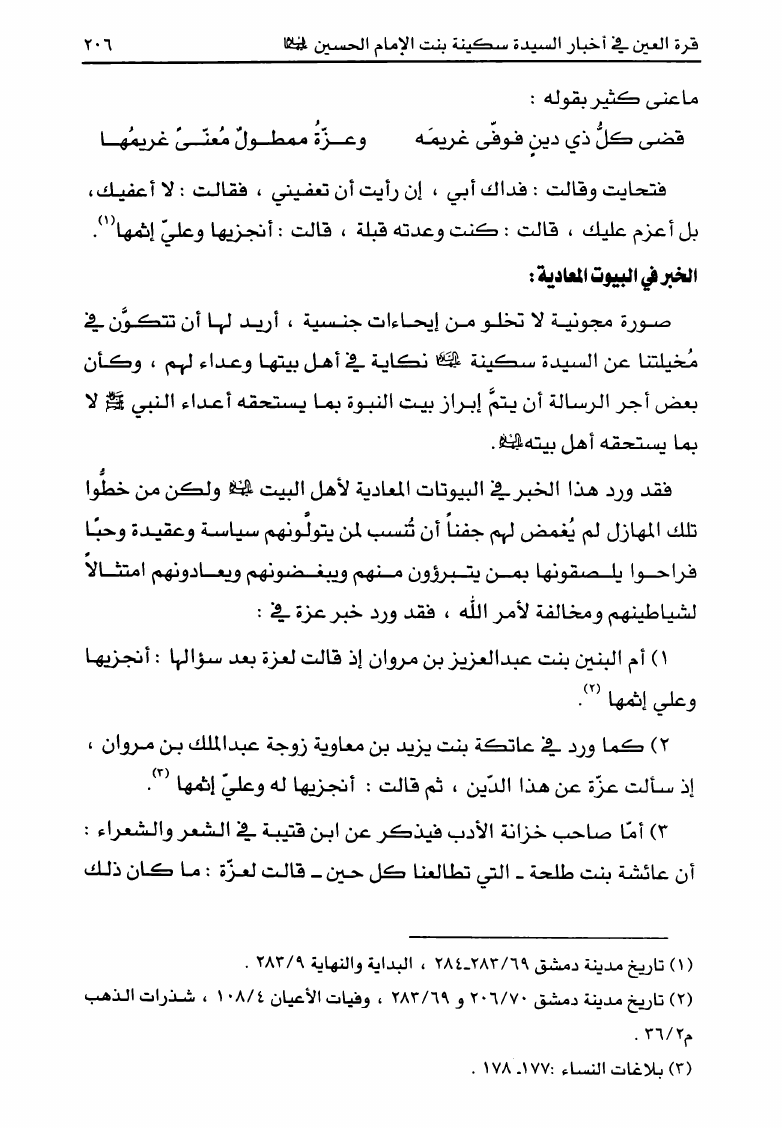 قرة العين ، في أخبار السيدة سكينة بن الإمام الحسين عليها السلام
