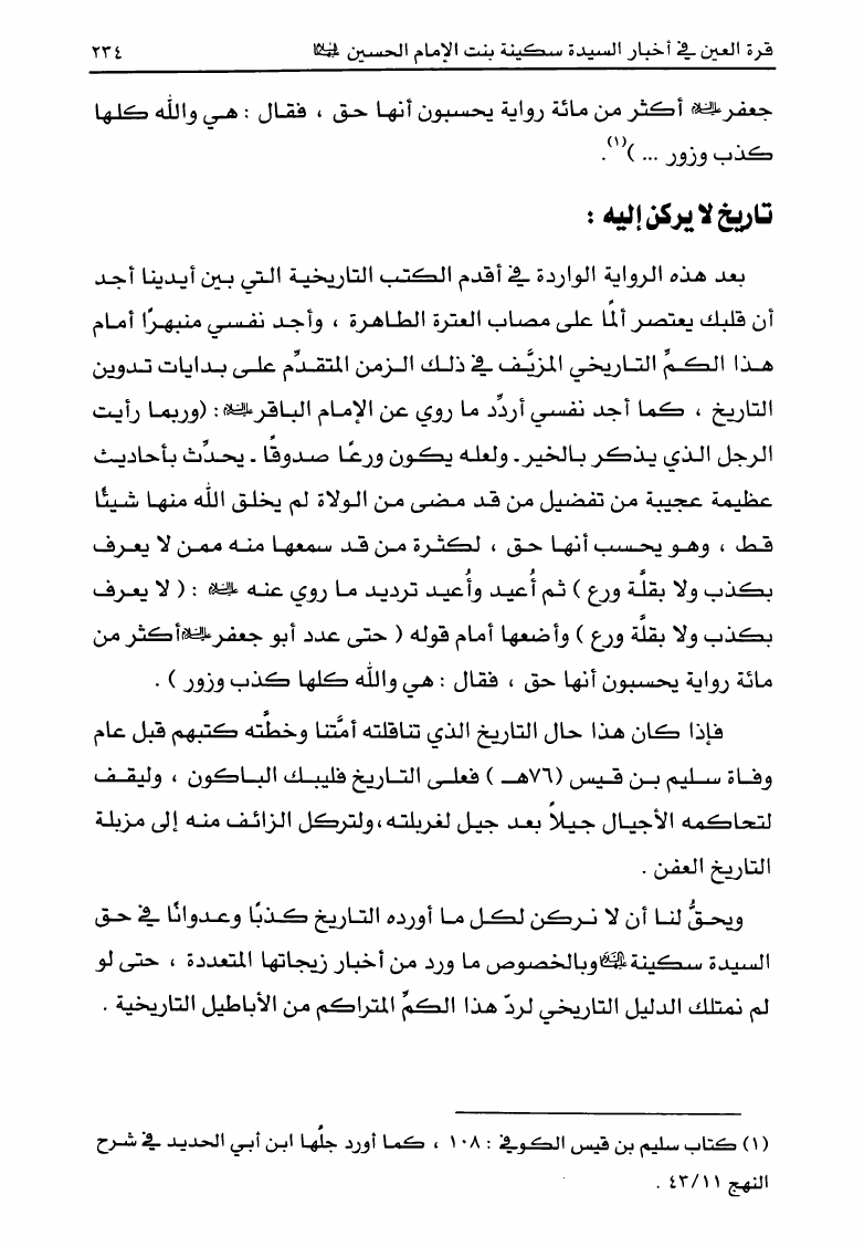 قرة العين ، في أخبار السيدة سكينة بن الإمام الحسين عليها السلام