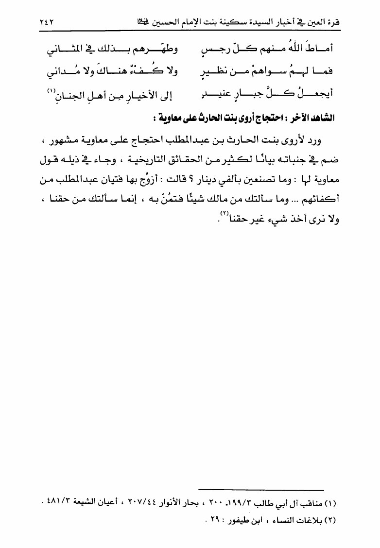 قرة العين ، في أخبار السيدة سكينة بن الإمام الحسين عليها السلام