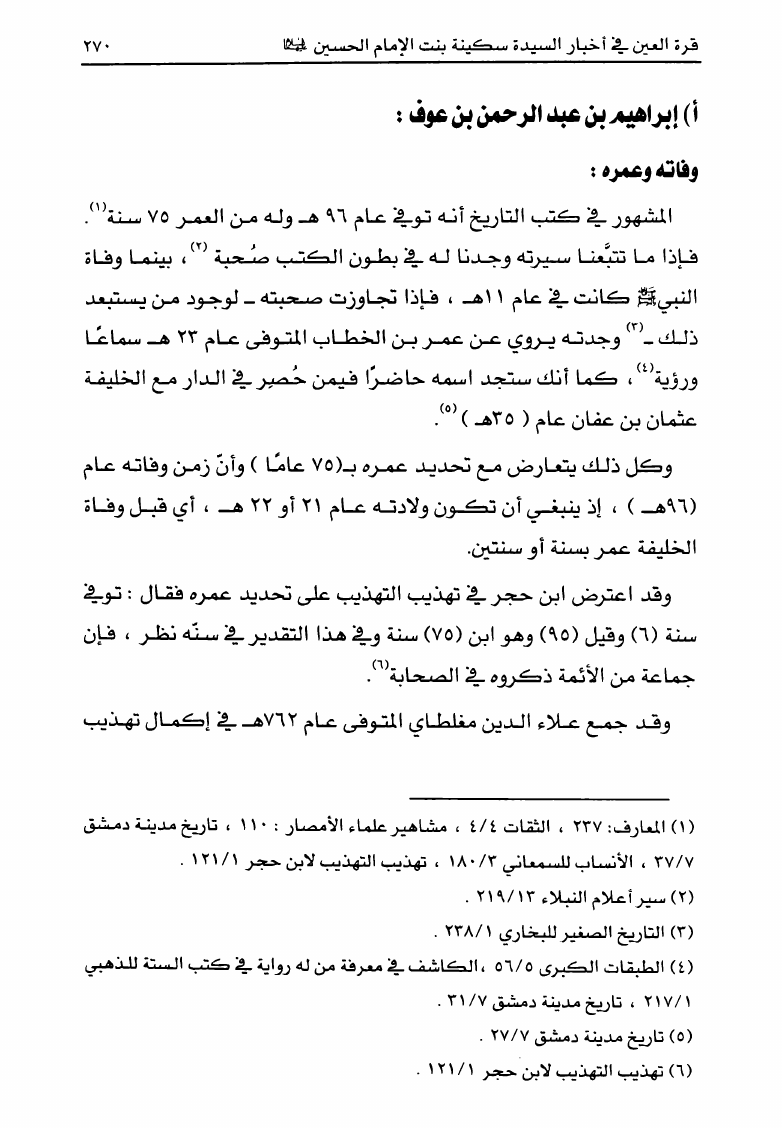 قرة العين ، في أخبار السيدة سكينة بن الإمام الحسين عليها السلام
