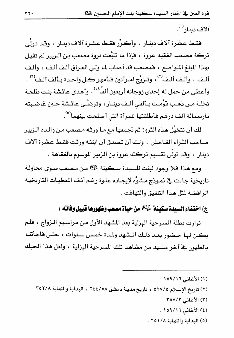 قرة العين ، في أخبار السيدة سكينة بن الإمام الحسين عليها السلام