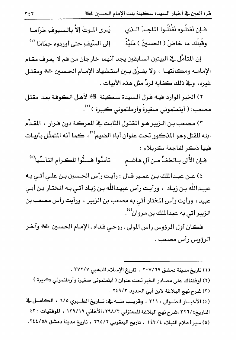 قرة العين ، في أخبار السيدة سكينة بن الإمام الحسين عليها السلام
