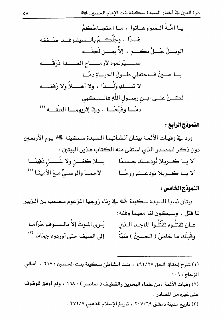 قرة العين ، في أخبار السيدة سكينة بن الإمام الحسين عليها السلام