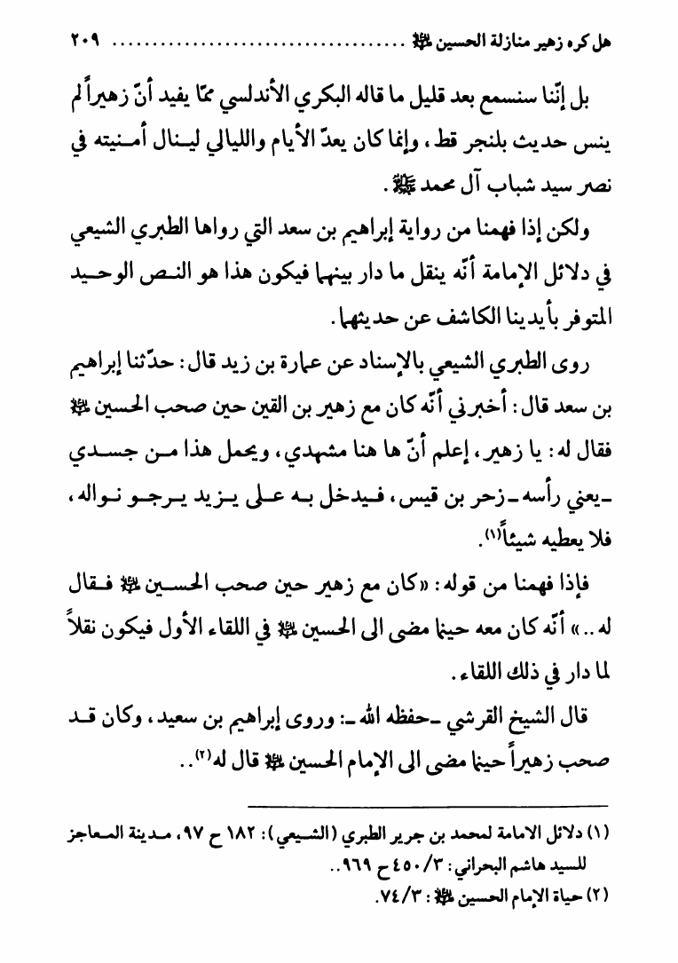 زهير بن القين، علوي خرج يتلقى الحسين ع