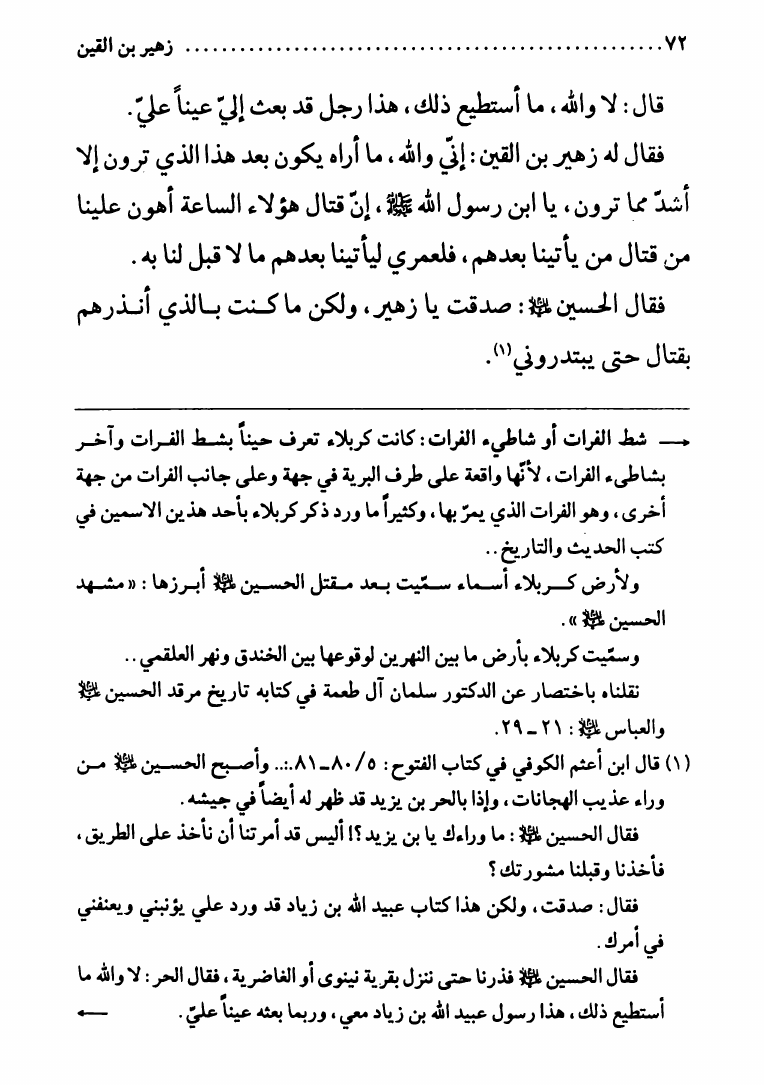 زهير بن القين، علوي خرج يتلقى الحسين ع