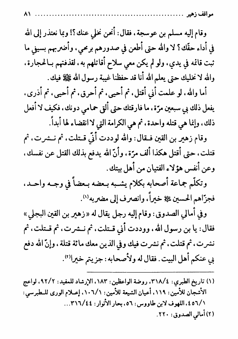 زهير بن القين، علوي خرج يتلقى الحسين ع