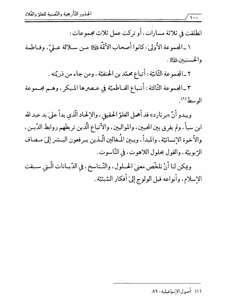 نام کتاب : الجذور التأريخية والنفسية للغلو والغلاة، دراسة تحليلية في الهوية والجذور لواقع الفرق المغالية نویسنده : الشيخ سامي الغريري جلد : 1 صفحه : 100