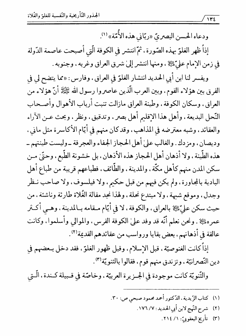 نام کتاب : الجذور التأريخية والنفسية للغلو والغلاة، دراسة تحليلية في الهوية والجذور لواقع الفرق المغالية نویسنده : الشيخ سامي الغريري جلد : 1 صفحه : 134