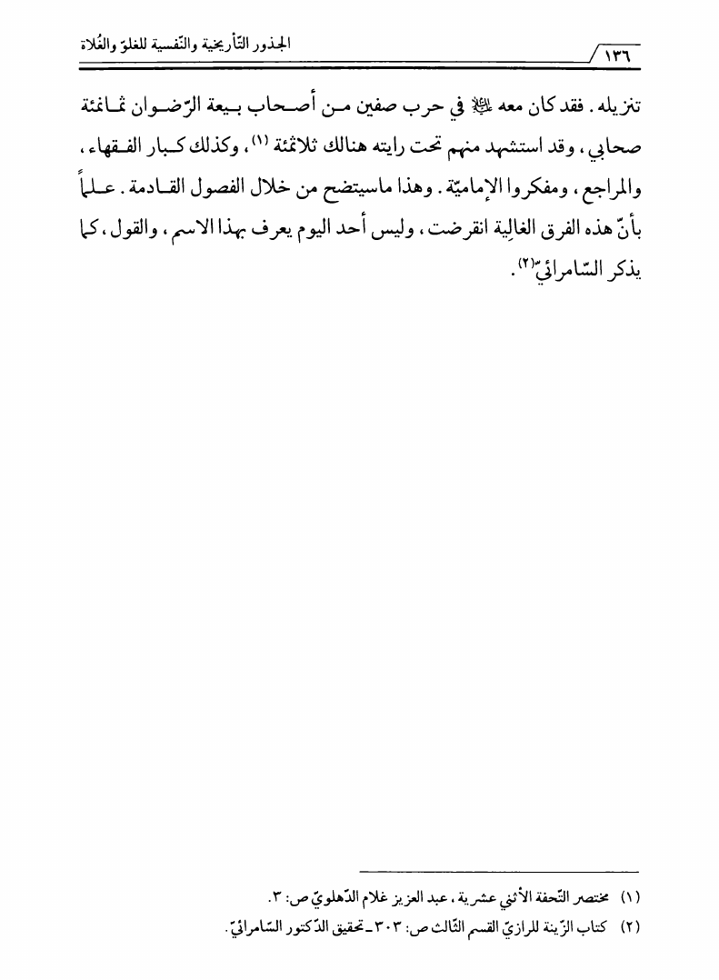 نام کتاب : الجذور التأريخية والنفسية للغلو والغلاة، دراسة تحليلية في الهوية والجذور لواقع الفرق المغالية نویسنده : الشيخ سامي الغريري جلد : 1 صفحه : 136