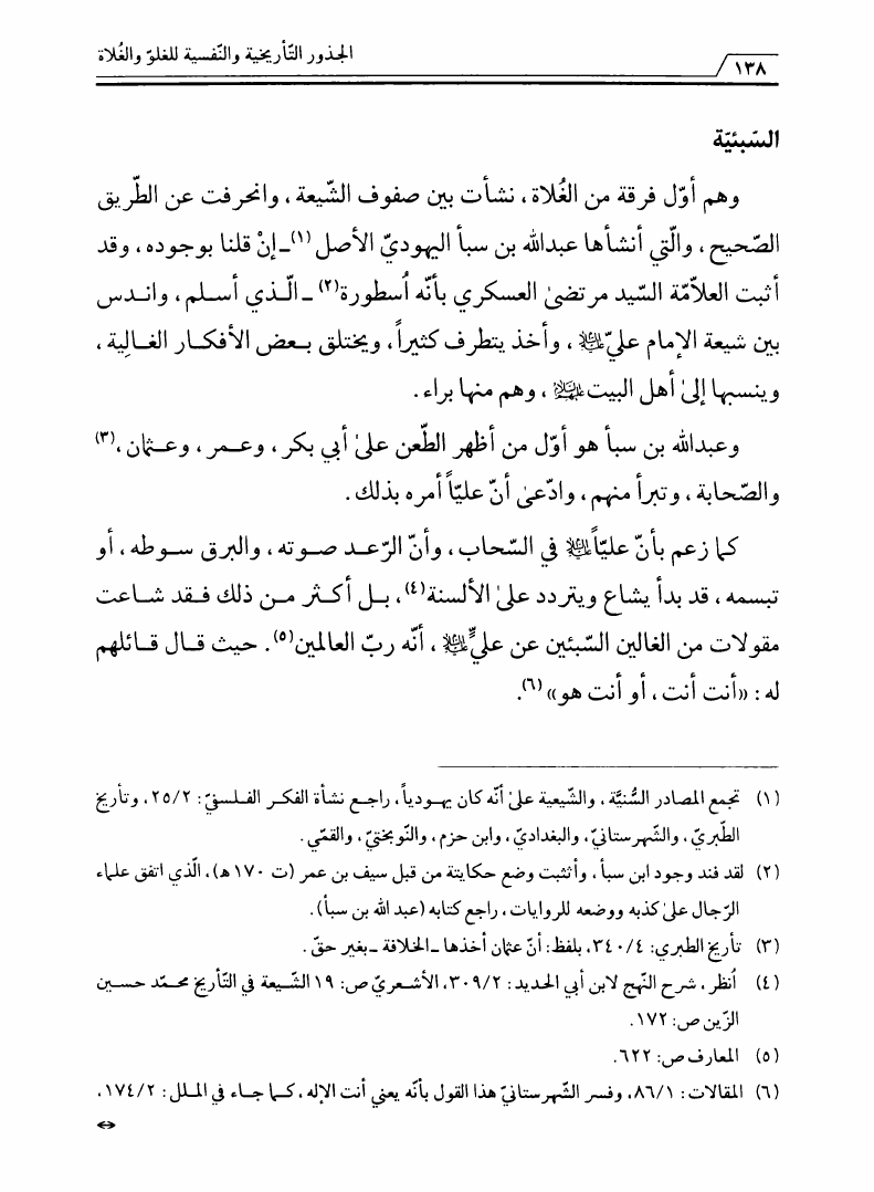 نام کتاب : الجذور التأريخية والنفسية للغلو والغلاة، دراسة تحليلية في الهوية والجذور لواقع الفرق المغالية نویسنده : الشيخ سامي الغريري جلد : 1 صفحه : 138