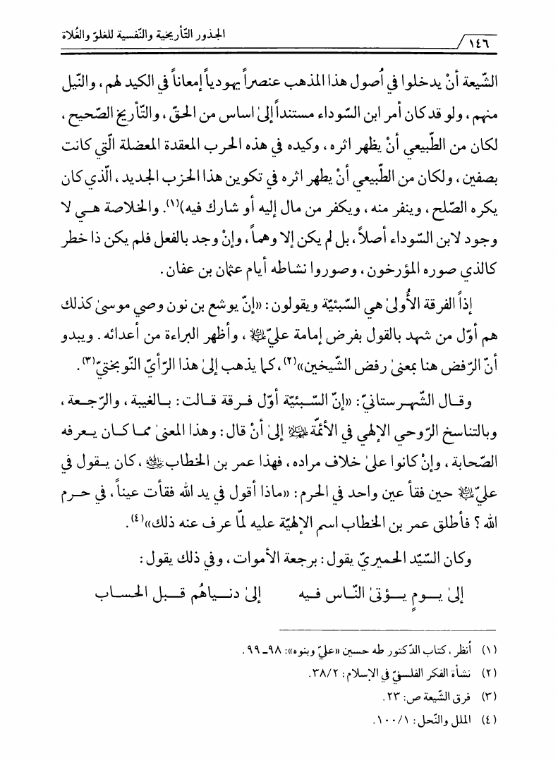 نام کتاب : الجذور التأريخية والنفسية للغلو والغلاة، دراسة تحليلية في الهوية والجذور لواقع الفرق المغالية نویسنده : الشيخ سامي الغريري جلد : 1 صفحه : 146