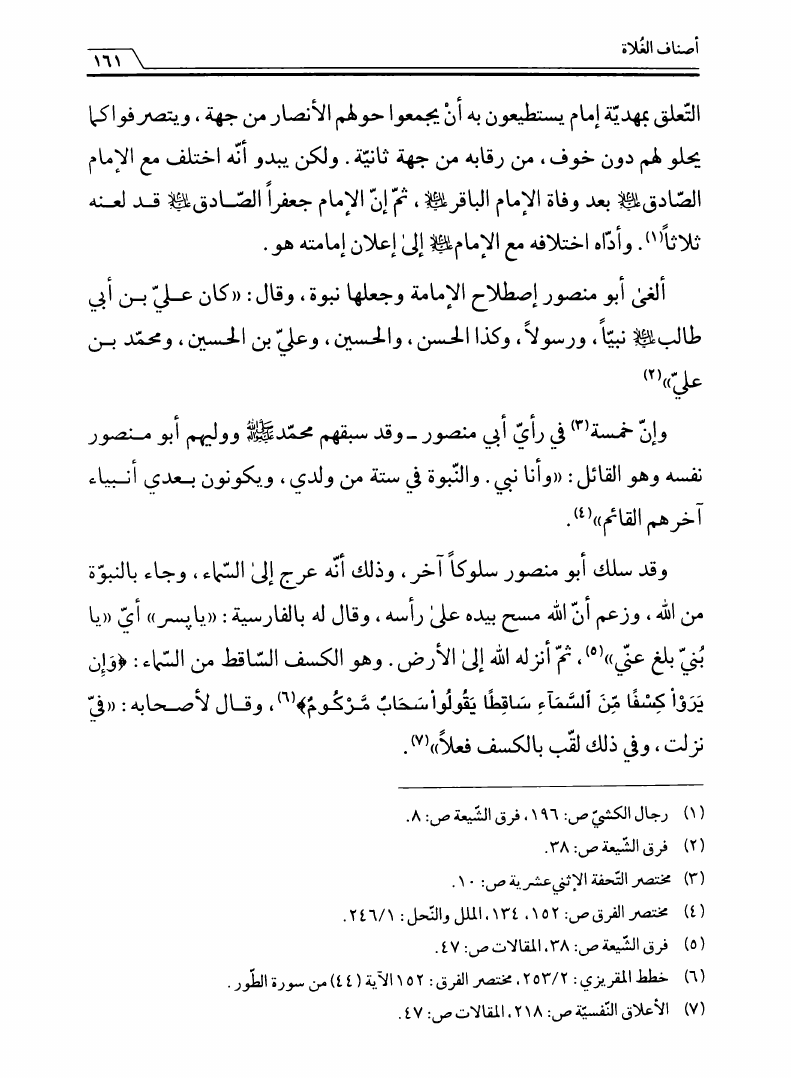 نام کتاب : الجذور التأريخية والنفسية للغلو والغلاة، دراسة تحليلية في الهوية والجذور لواقع الفرق المغالية نویسنده : الشيخ سامي الغريري جلد : 1 صفحه : 161