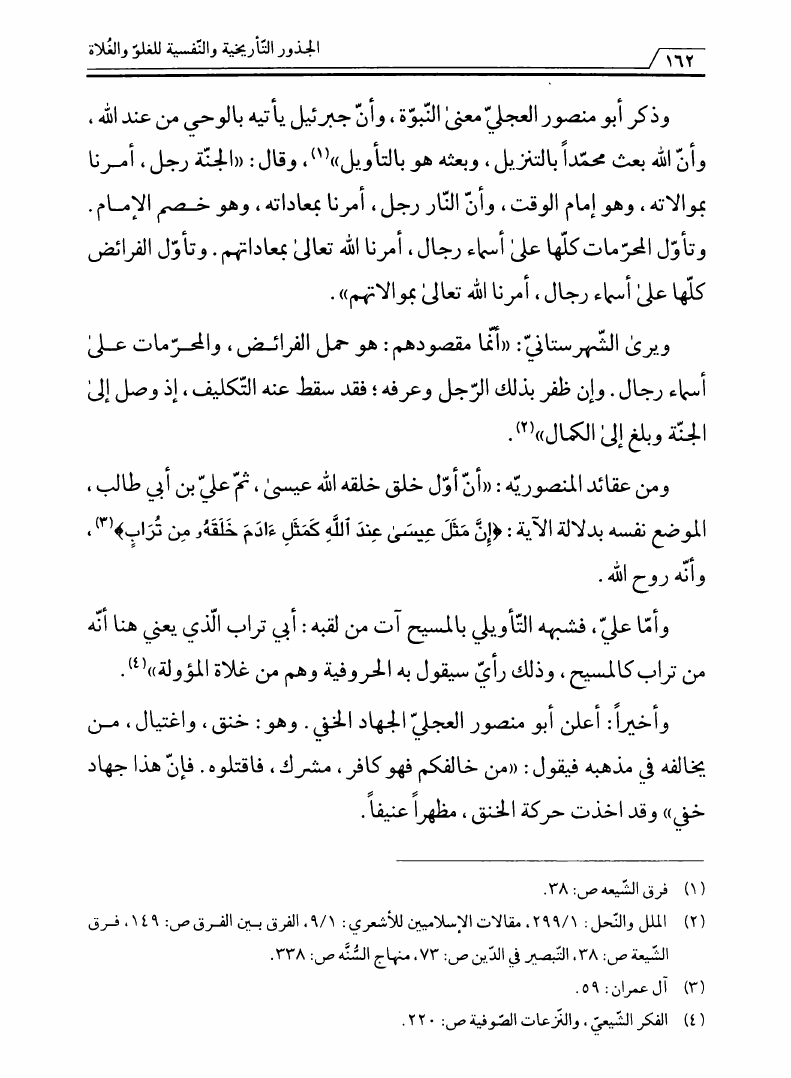 نام کتاب : الجذور التأريخية والنفسية للغلو والغلاة، دراسة تحليلية في الهوية والجذور لواقع الفرق المغالية نویسنده : الشيخ سامي الغريري جلد : 1 صفحه : 162