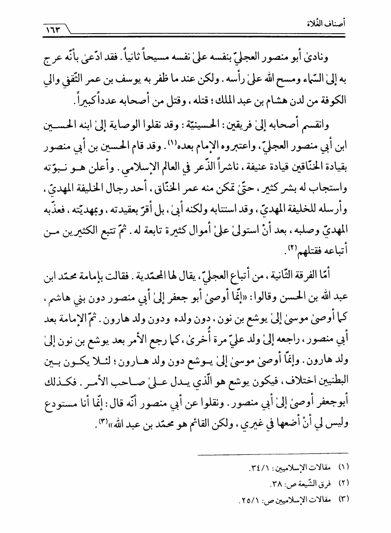 نام کتاب : الجذور التأريخية والنفسية للغلو والغلاة، دراسة تحليلية في الهوية والجذور لواقع الفرق المغالية نویسنده : الشيخ سامي الغريري جلد : 1 صفحه : 163