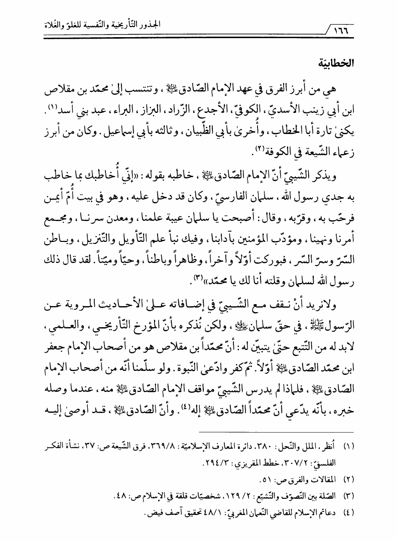 نام کتاب : الجذور التأريخية والنفسية للغلو والغلاة، دراسة تحليلية في الهوية والجذور لواقع الفرق المغالية نویسنده : الشيخ سامي الغريري جلد : 1 صفحه : 166
