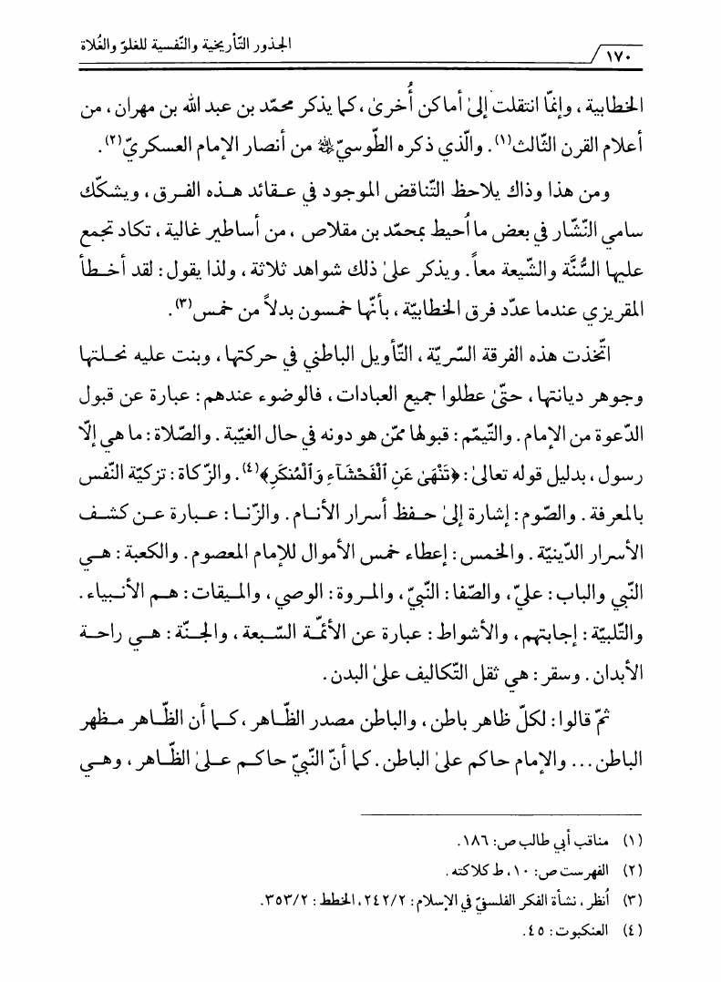 نام کتاب : الجذور التأريخية والنفسية للغلو والغلاة، دراسة تحليلية في الهوية والجذور لواقع الفرق المغالية نویسنده : الشيخ سامي الغريري جلد : 1 صفحه : 170