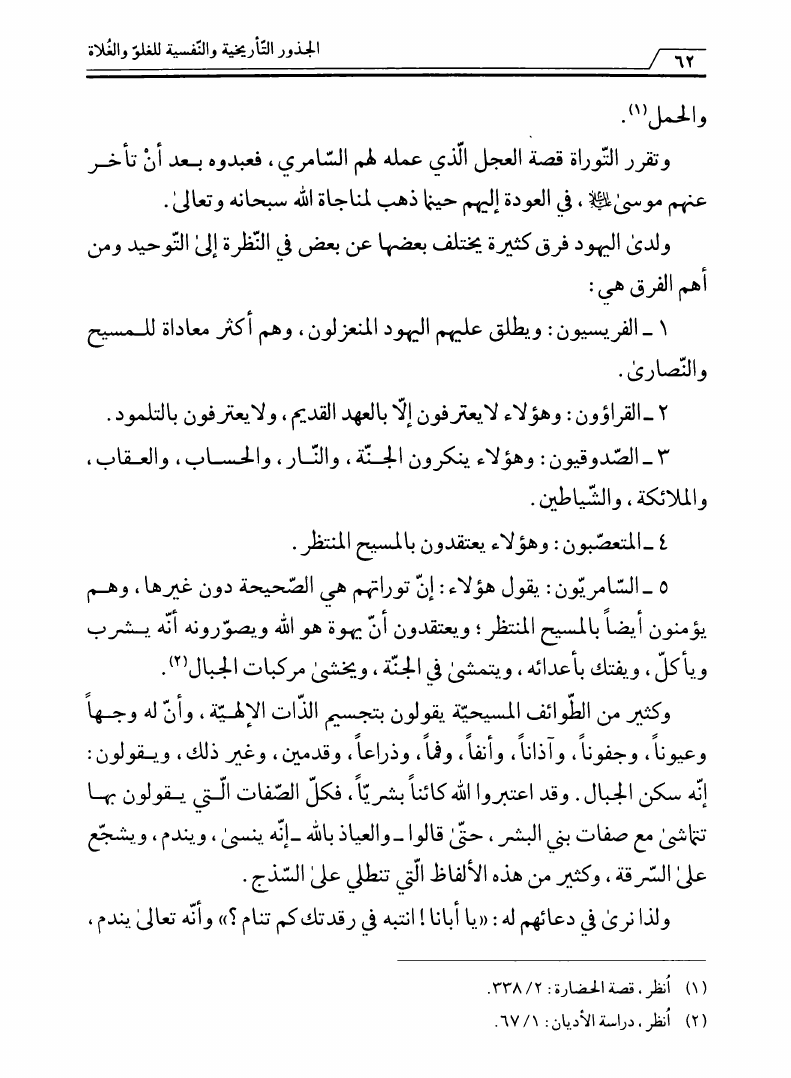 نام کتاب : الجذور التأريخية والنفسية للغلو والغلاة، دراسة تحليلية في الهوية والجذور لواقع الفرق المغالية نویسنده : الشيخ سامي الغريري جلد : 1 صفحه : 62