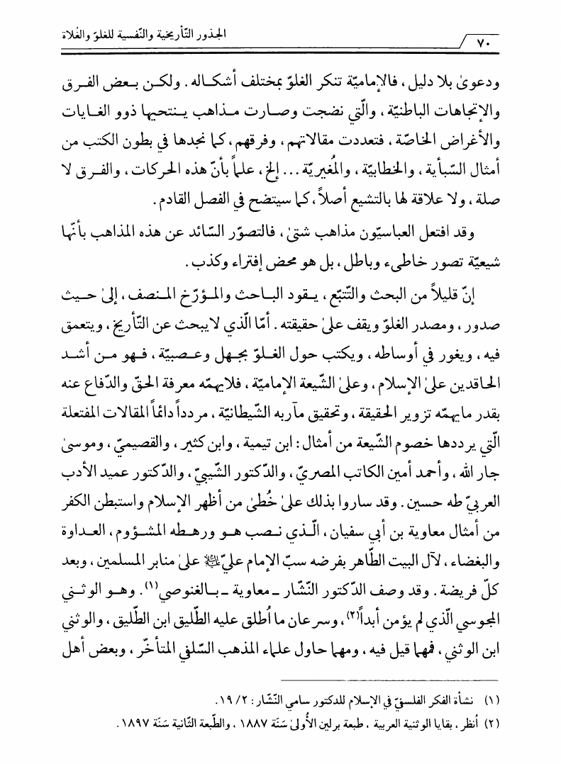 نام کتاب : الجذور التأريخية والنفسية للغلو والغلاة، دراسة تحليلية في الهوية والجذور لواقع الفرق المغالية نویسنده : الشيخ سامي الغريري جلد : 1 صفحه : 70