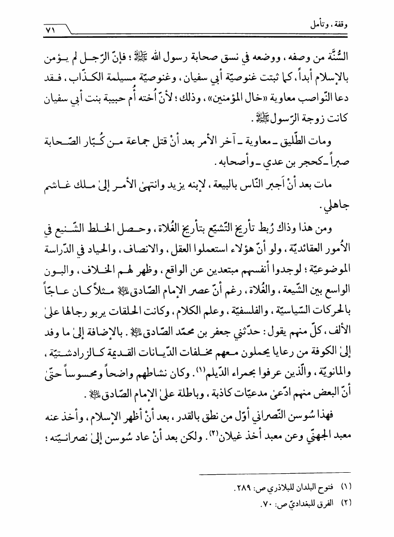 نام کتاب : الجذور التأريخية والنفسية للغلو والغلاة، دراسة تحليلية في الهوية والجذور لواقع الفرق المغالية نویسنده : الشيخ سامي الغريري جلد : 1 صفحه : 71