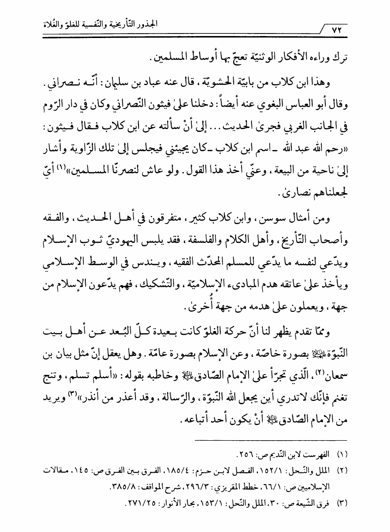 نام کتاب : الجذور التأريخية والنفسية للغلو والغلاة، دراسة تحليلية في الهوية والجذور لواقع الفرق المغالية نویسنده : الشيخ سامي الغريري جلد : 1 صفحه : 72