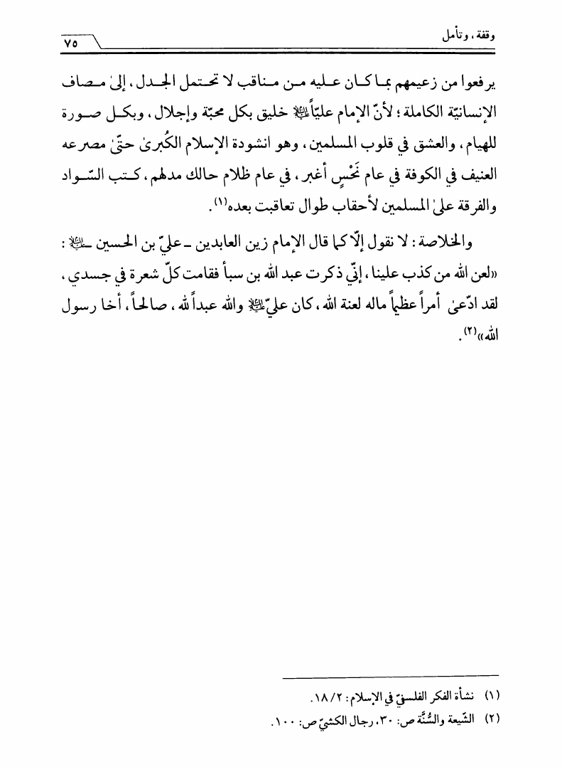 نام کتاب : الجذور التأريخية والنفسية للغلو والغلاة، دراسة تحليلية في الهوية والجذور لواقع الفرق المغالية نویسنده : الشيخ سامي الغريري جلد : 1 صفحه : 75