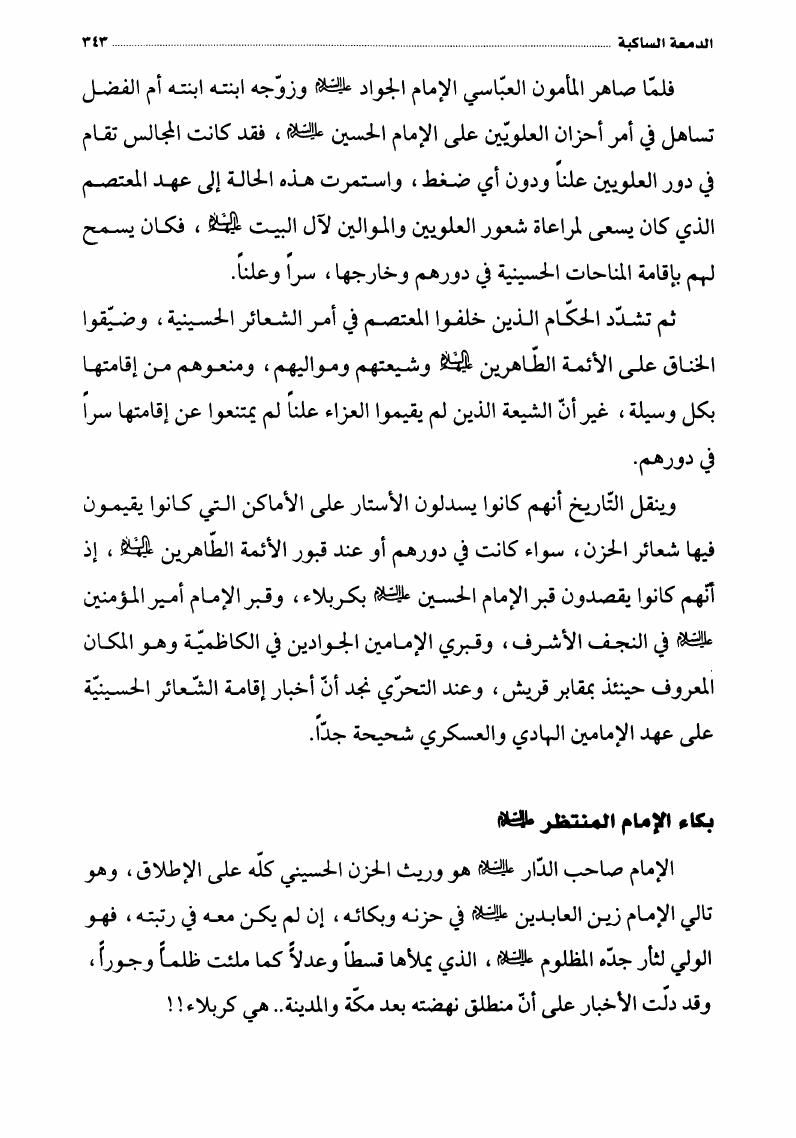 الدمعة الساكبة، بحوث في المأتم والبكاء الحسيني