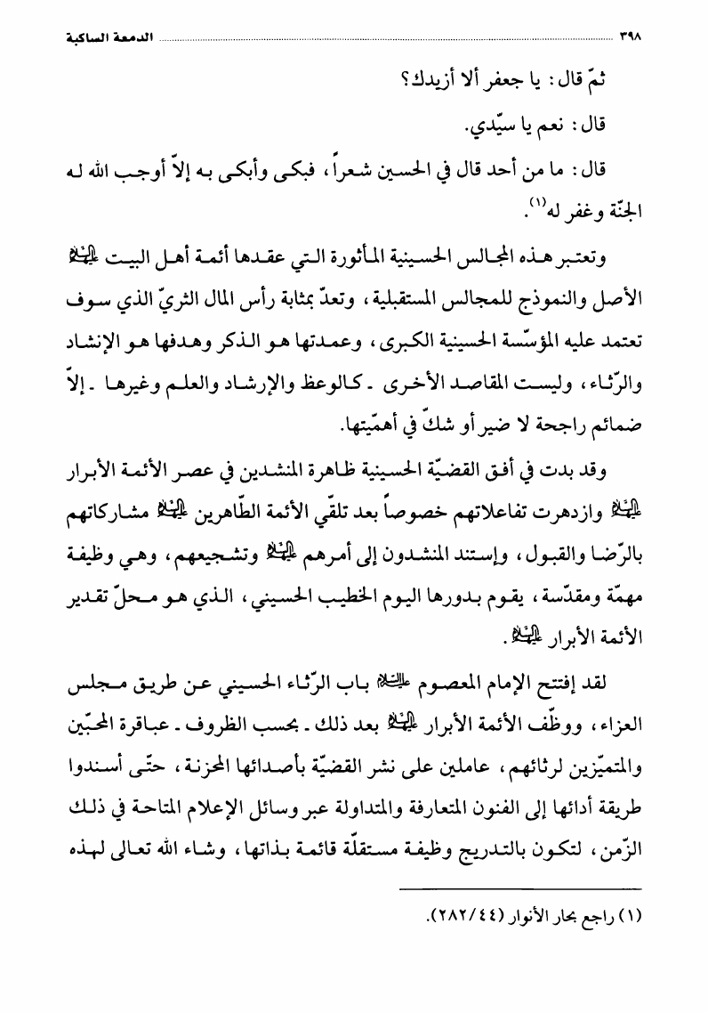 الدمعة الساكبة، بحوث في المأتم والبكاء الحسيني