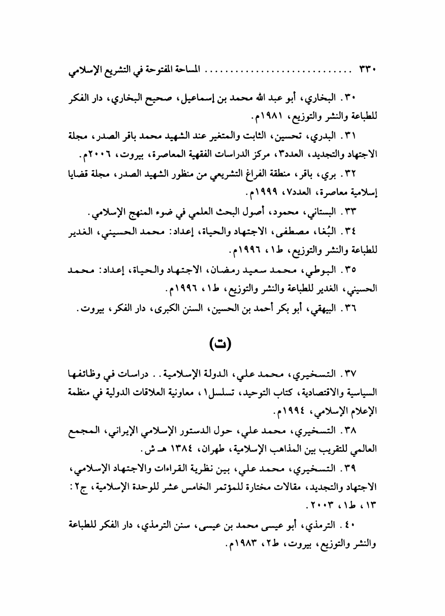 المساحة المفتوحة، في التشريع الإسلامي