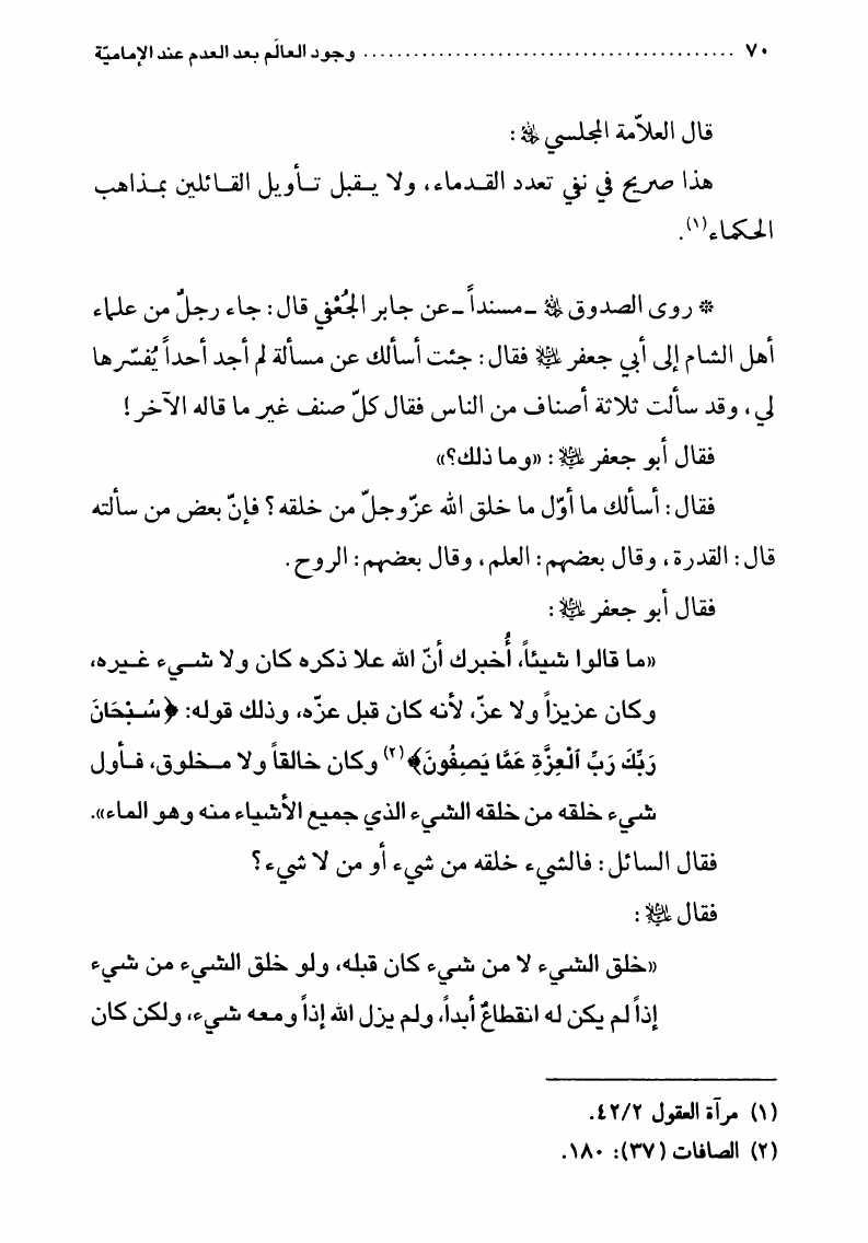 وجود العالم بعد العدم ، في اثبات حدوث العالم زماناً عند الامامية