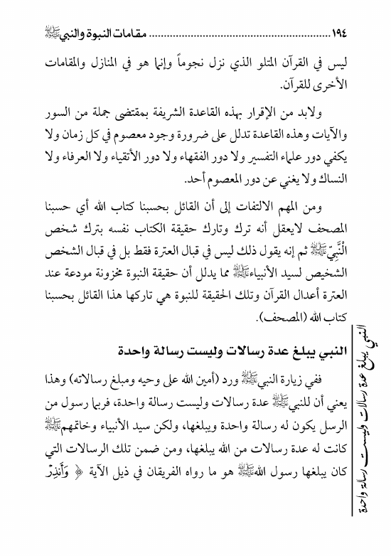 مقامات النبي ص والنبوة، ذكر وحياني وليست تجربة بشرية