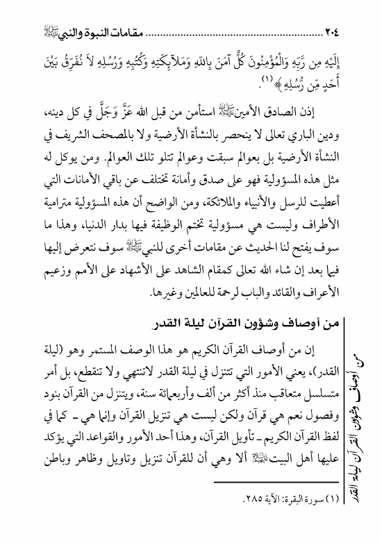 مقامات النبي ص والنبوة، ذكر وحياني وليست تجربة بشرية