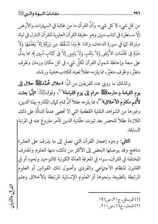 مقامات النبي ص والنبوة، ذكر وحياني وليست تجربة بشرية