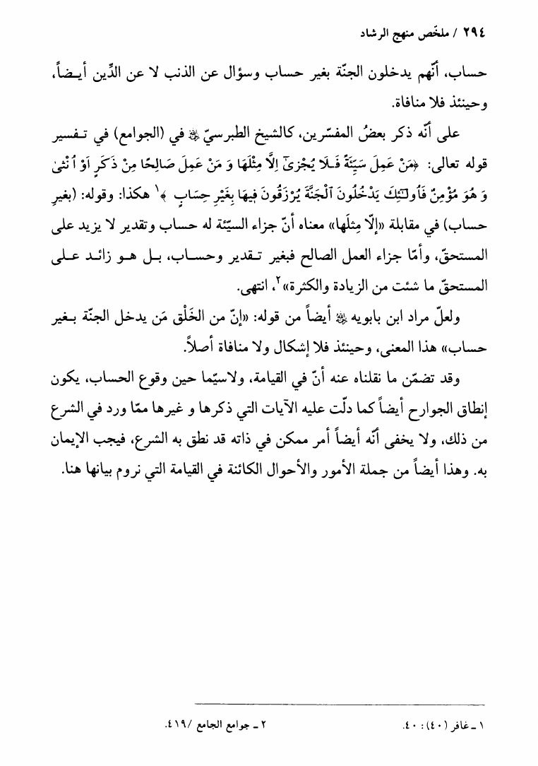 ملخص منهج الرشاد في المعاد الجسماني