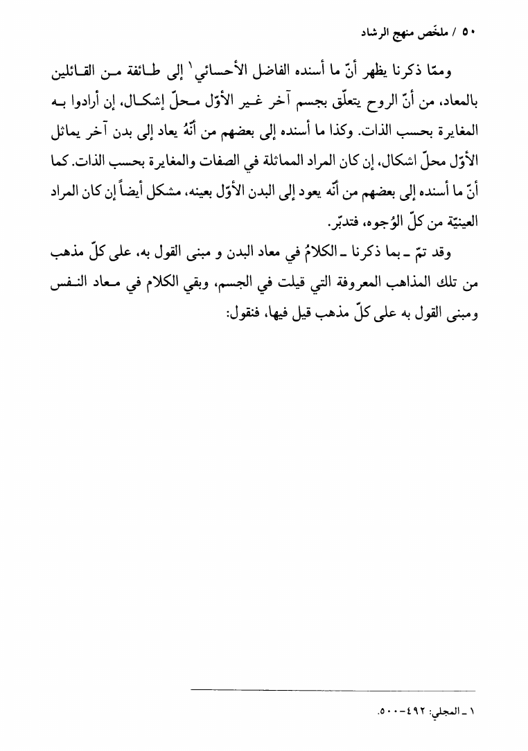 ملخص منهج الرشاد في المعاد الجسماني