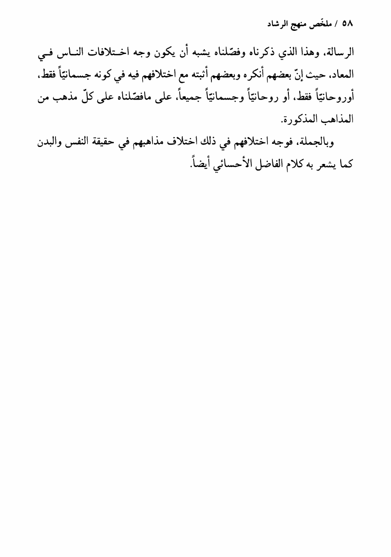 ملخص منهج الرشاد في المعاد الجسماني
