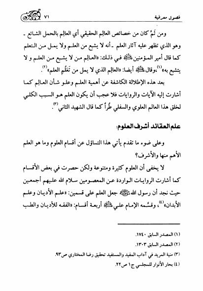 فصول معرفية، قراءة في أهمية الشأن العقائدي