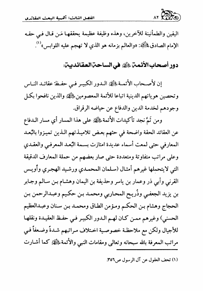 فصول معرفية، قراءة في أهمية الشأن العقائدي