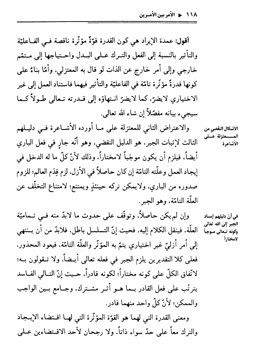 الأمر بين الأمرين، تحقيق أنيق حول نفي الجبر والتفويض وإثبات الأمر بين الأمرين