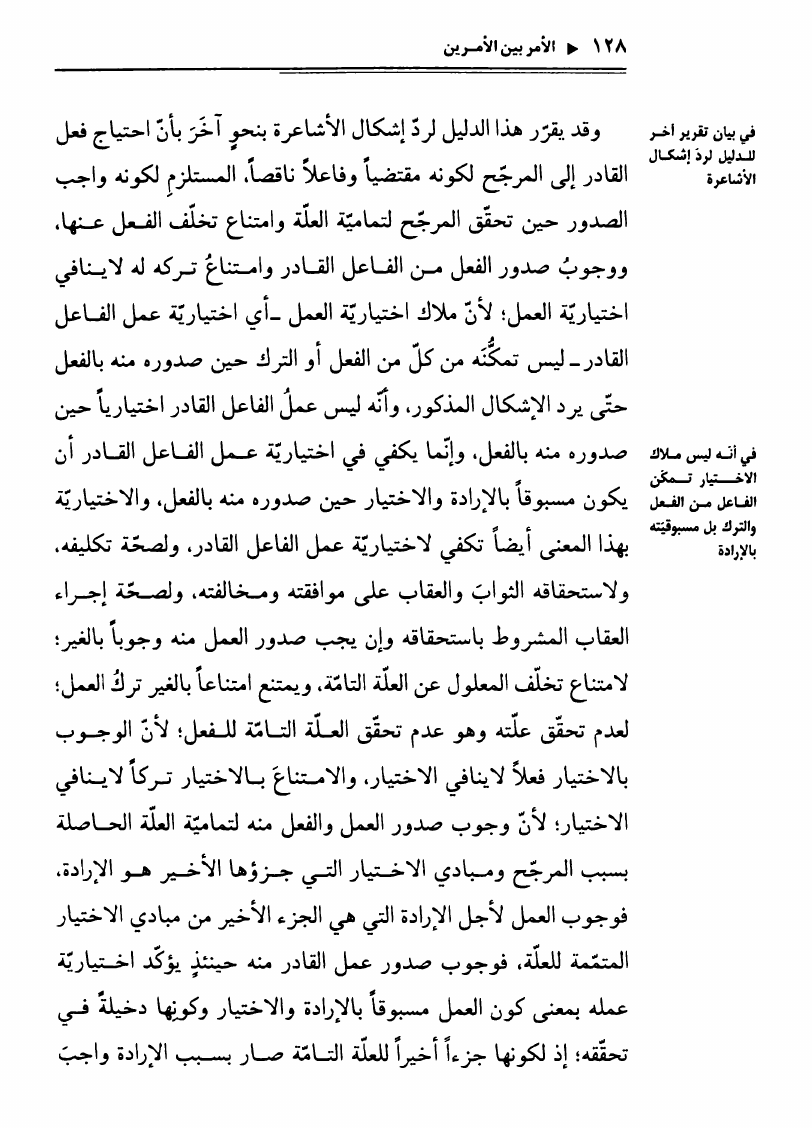 الأمر بين الأمرين، تحقيق أنيق حول نفي الجبر والتفويض وإثبات الأمر بين الأمرين