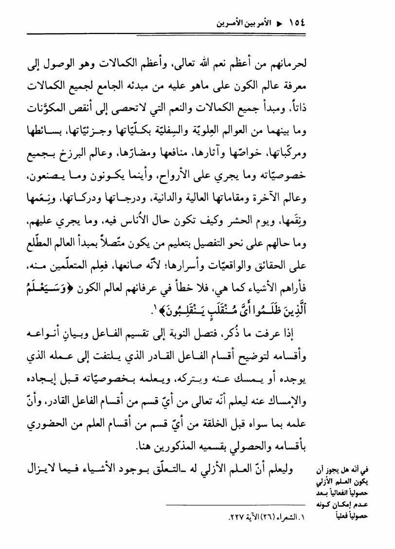 الأمر بين الأمرين، تحقيق أنيق حول نفي الجبر والتفويض وإثبات الأمر بين الأمرين