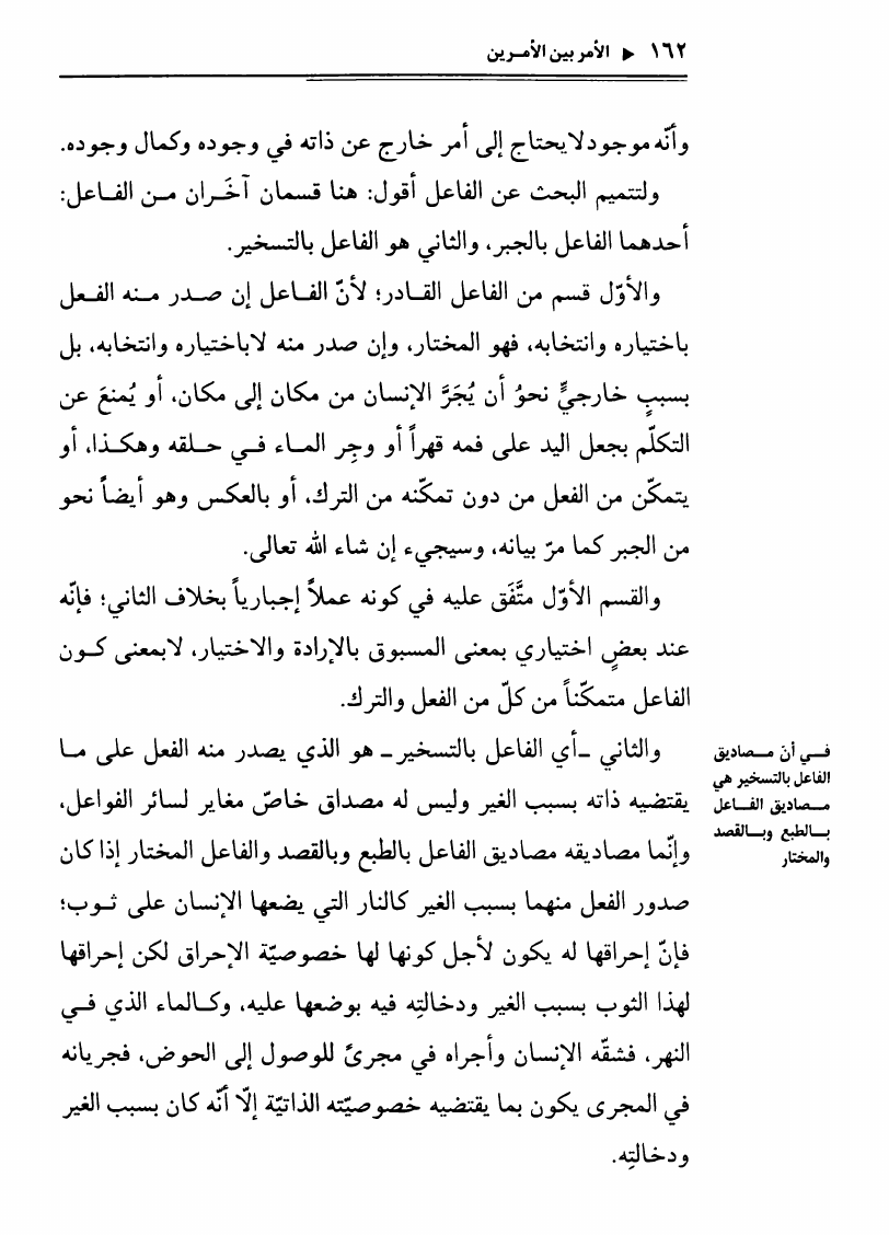 الأمر بين الأمرين، تحقيق أنيق حول نفي الجبر والتفويض وإثبات الأمر بين الأمرين