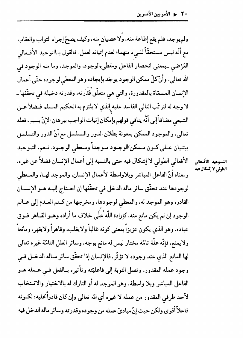 الأمر بين الأمرين، تحقيق أنيق حول نفي الجبر والتفويض وإثبات الأمر بين الأمرين