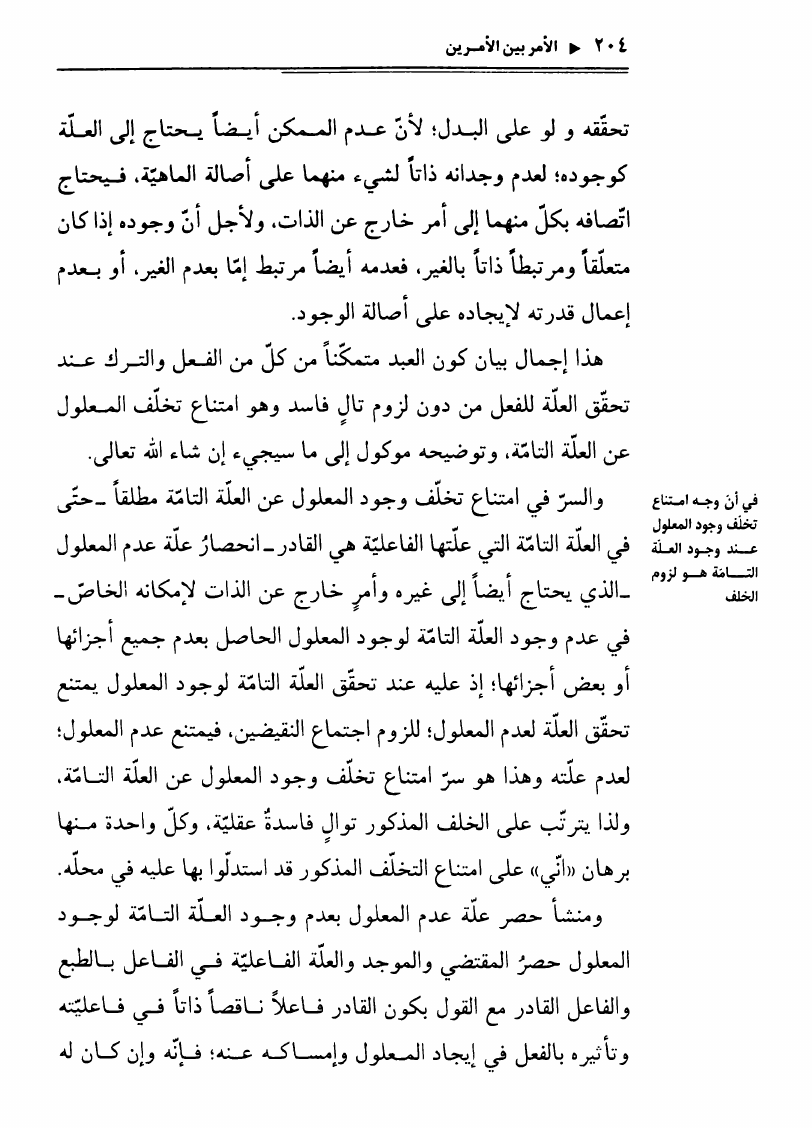 الأمر بين الأمرين، تحقيق أنيق حول نفي الجبر والتفويض وإثبات الأمر بين الأمرين