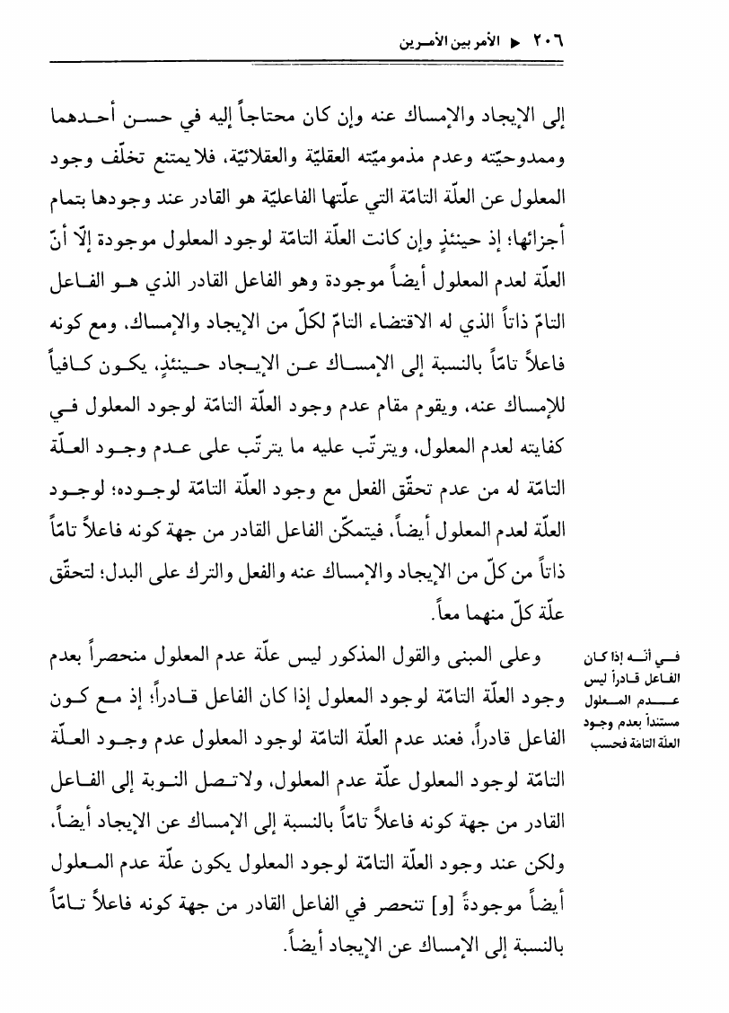 الأمر بين الأمرين، تحقيق أنيق حول نفي الجبر والتفويض وإثبات الأمر بين الأمرين