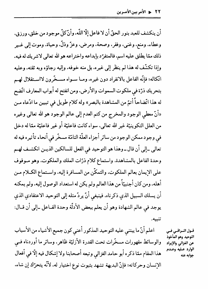 الأمر بين الأمرين، تحقيق أنيق حول نفي الجبر والتفويض وإثبات الأمر بين الأمرين