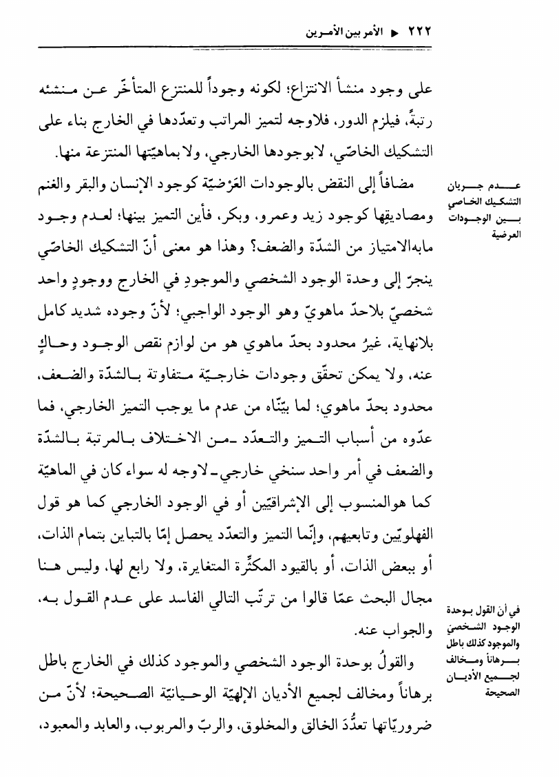 الأمر بين الأمرين، تحقيق أنيق حول نفي الجبر والتفويض وإثبات الأمر بين الأمرين