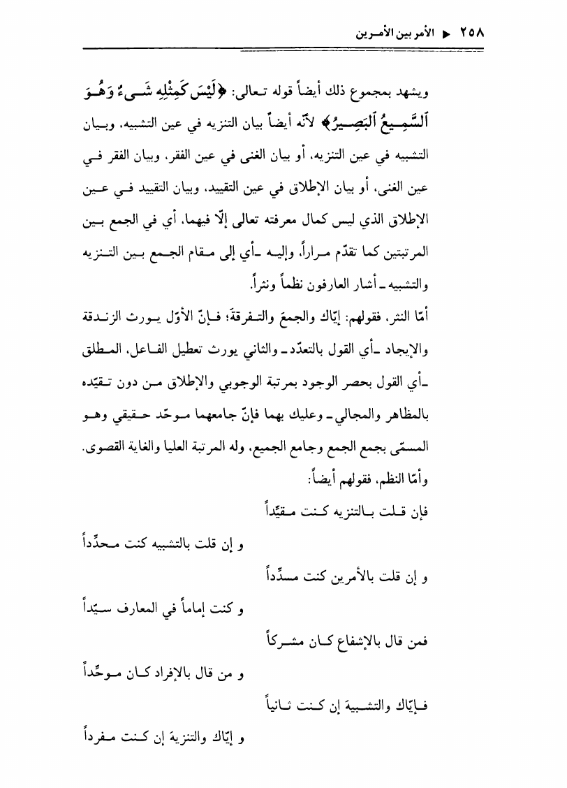 الأمر بين الأمرين، تحقيق أنيق حول نفي الجبر والتفويض وإثبات الأمر بين الأمرين