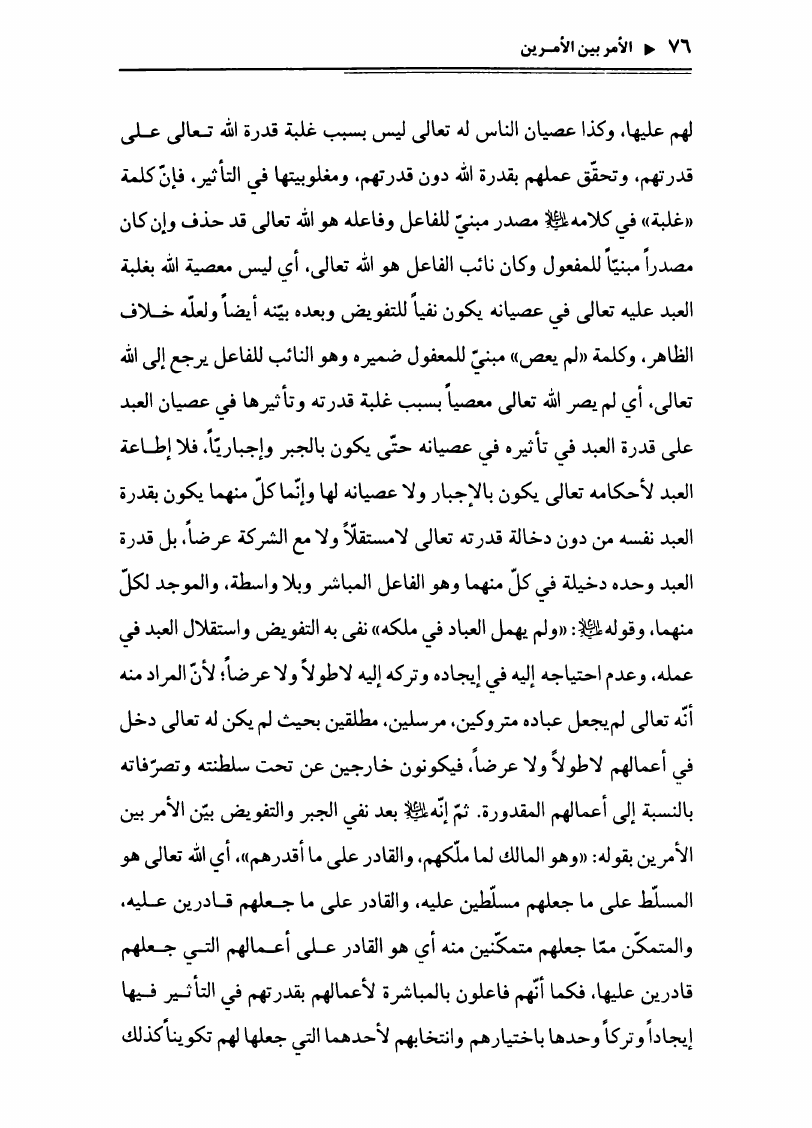 الأمر بين الأمرين، تحقيق أنيق حول نفي الجبر والتفويض وإثبات الأمر بين الأمرين