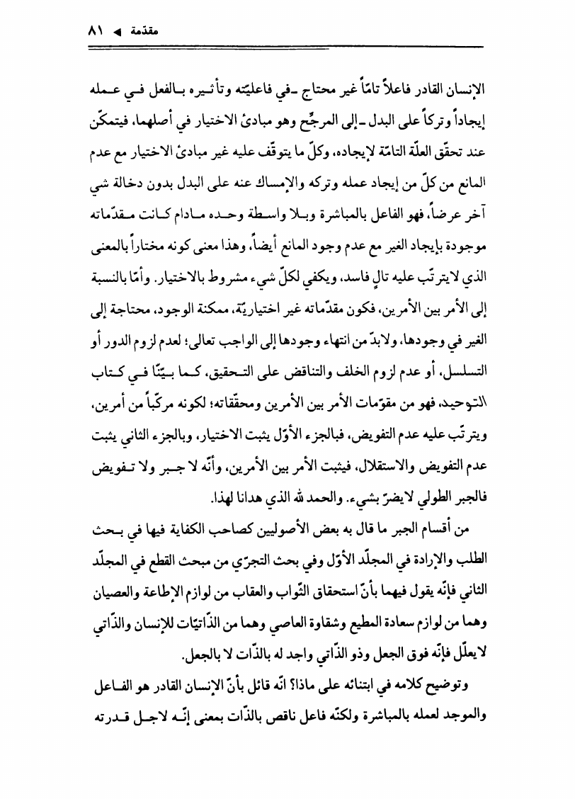 الأمر بين الأمرين، تحقيق أنيق حول نفي الجبر والتفويض وإثبات الأمر بين الأمرين