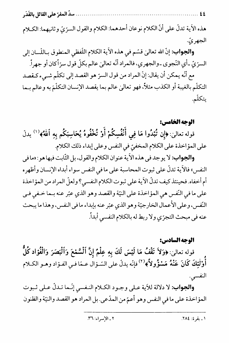 سد المفر، على القائل بالقدر